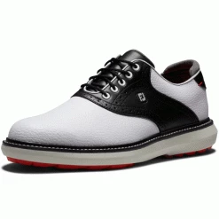 FootJoy Traditions Spikeless Golf Shoes feature classic style and a traditional, timeless look with a modern lightweight ride. The shoe’s super-cushioned foam underfoot and no-slip achilles pad provide all day comfort so you can walk the course with ease. The VersaTrax outsole is engineered with traction elements to create an outsole that is perfect for on course performance with wear to the course versatility. FootJoy backs the traditions with a 1-year waterproof warranty.
