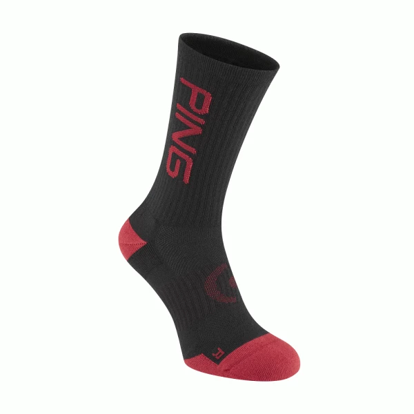 The Ping Logo Golf Socks (2-Pack) feature Ping’s SensorCool® technology to help regulate your temperature in any conditions. COOLMAX fabric contains fibres with a channelled surface to move moisture away from the body in warm conditions. In addition, COOLMAX fibres feature a hollow core to provide insulation for added comfort on cooler days. Bold Ping branding and Left/Right indicators on each sock complete the look.