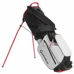 TaylorMade Flextech Lite 2021 – a super lightweight golf bag, superb for those hot days, 9 holes, to the range, holidays, and versatile if you want lightweight help to play 18 holes after work. The new TaylorMade FlexTech Lite stand bag builds on the outstanding success of previous lightweight golf bags with upgraded improvements in both function and premium features and has everything you need in a golf carry bag. The FlexTech Lite stand bag is a lightweight 2.1KG bag and sports a 4-Point double carry strap system with strap slider that makes it incredibly agile and easy to get from fairway to fairway. The FlexTech Lite performs exceedingly well as a walking bag, but can double duty “on cart” easily with the use of the new innovative FlexTech stand system that offers a smooth release with a reduction of club crowding. The FlexTech Lite also has a 7.5″ 4-way divider top with easy lift grab handle.