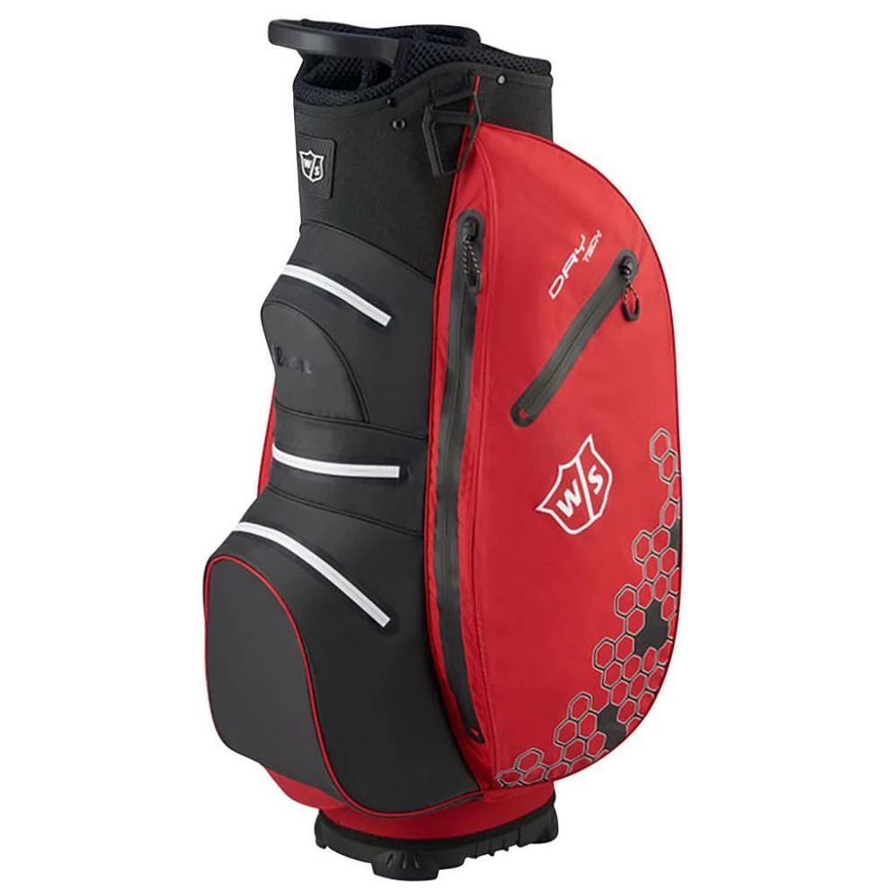 Probably one of the best waterproof bags that are on offer in our store. The Wilson Staff Dry Tech cart bags deliver convenience, function and 100% Waterproof design: generous ball pockets, velour pockets for valuables, waterproof pockets for mobile phones and electronics- even insulated pockets for your favorite beverages. The Wilson Staff Dry Tech cart bag guarantees that the contents of your golf bag will stay dry even through the heaviest of rain so that you can concentrate on playing your best golf. A total of 7 pockets have been used in the design of the Wilson Staff Dry Tech carry bag, all of which are positioned so that they are easily accessible. The 7 pockets include various main pockets, rangefinder pocket ball pocket.
