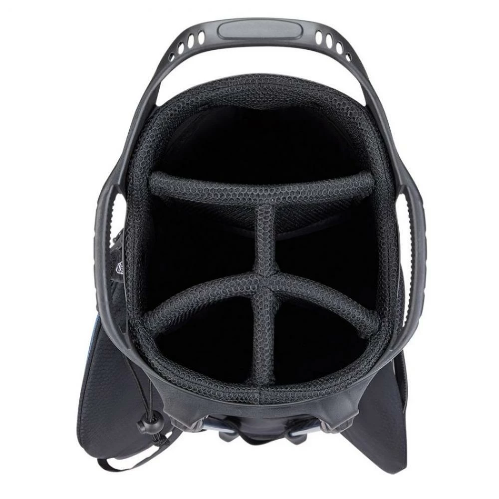 To provide exceptional carrying comfort and balance to the bag when loaded a four-point double strap system has been used. Other features on the EXO stand bag are an air-flow hip pad, pen sleeve, umbrella holder and a base handle that will let you lift and load into a car boot.
